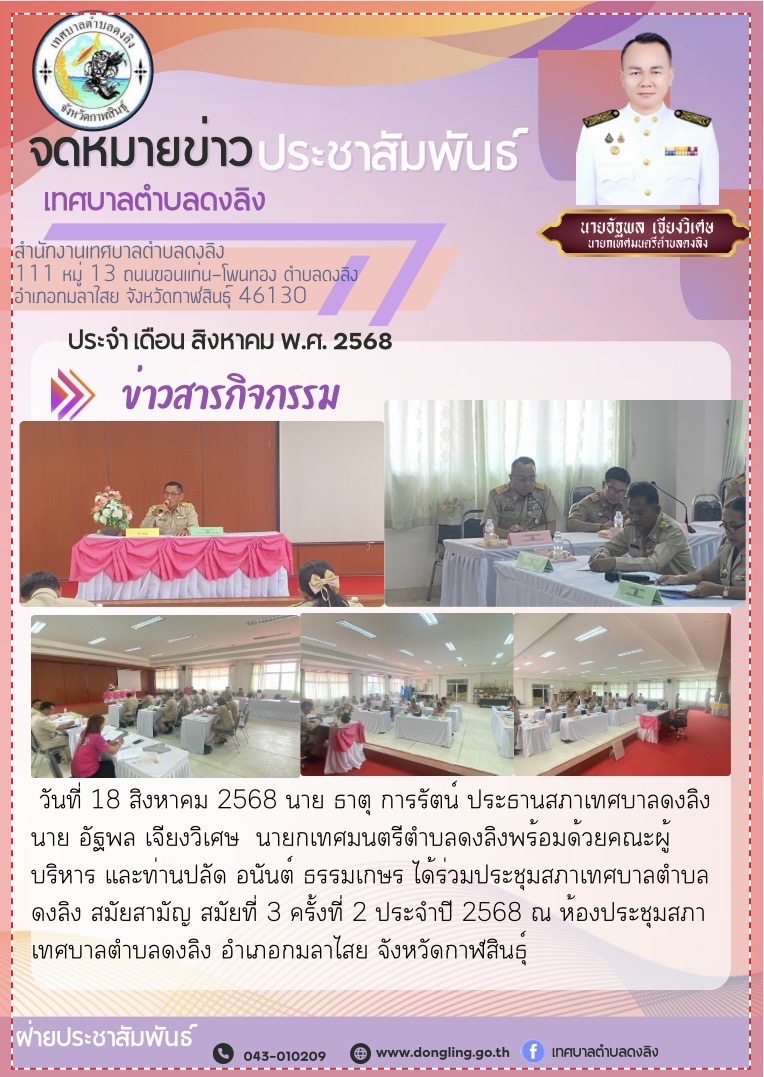 วันที่ 18 สิงหาคม 2568 นาย ธาตุ การรัตน์ ประธานสภา...