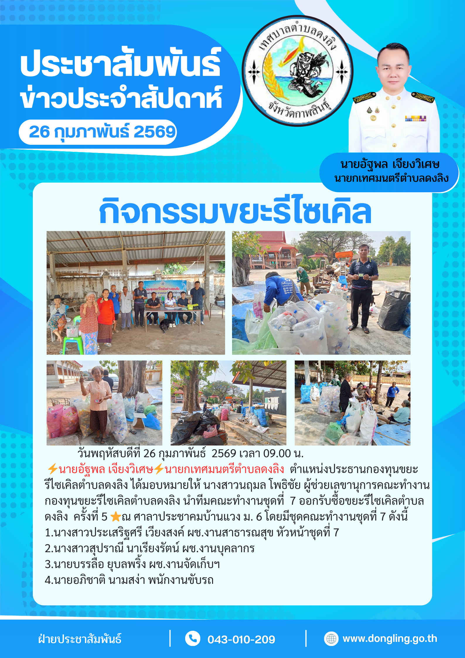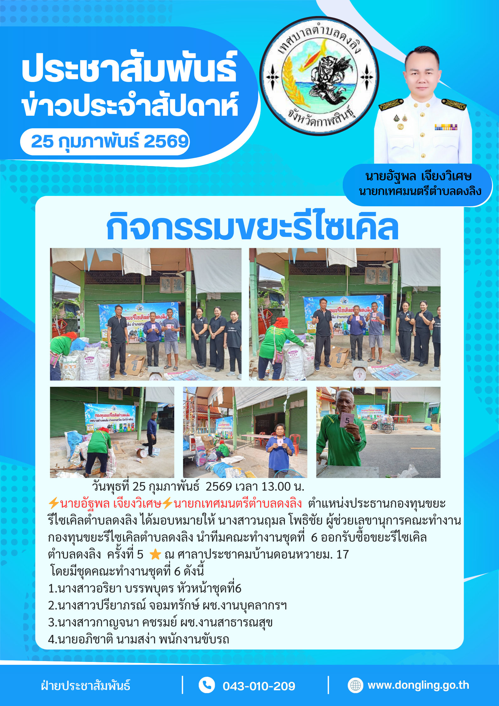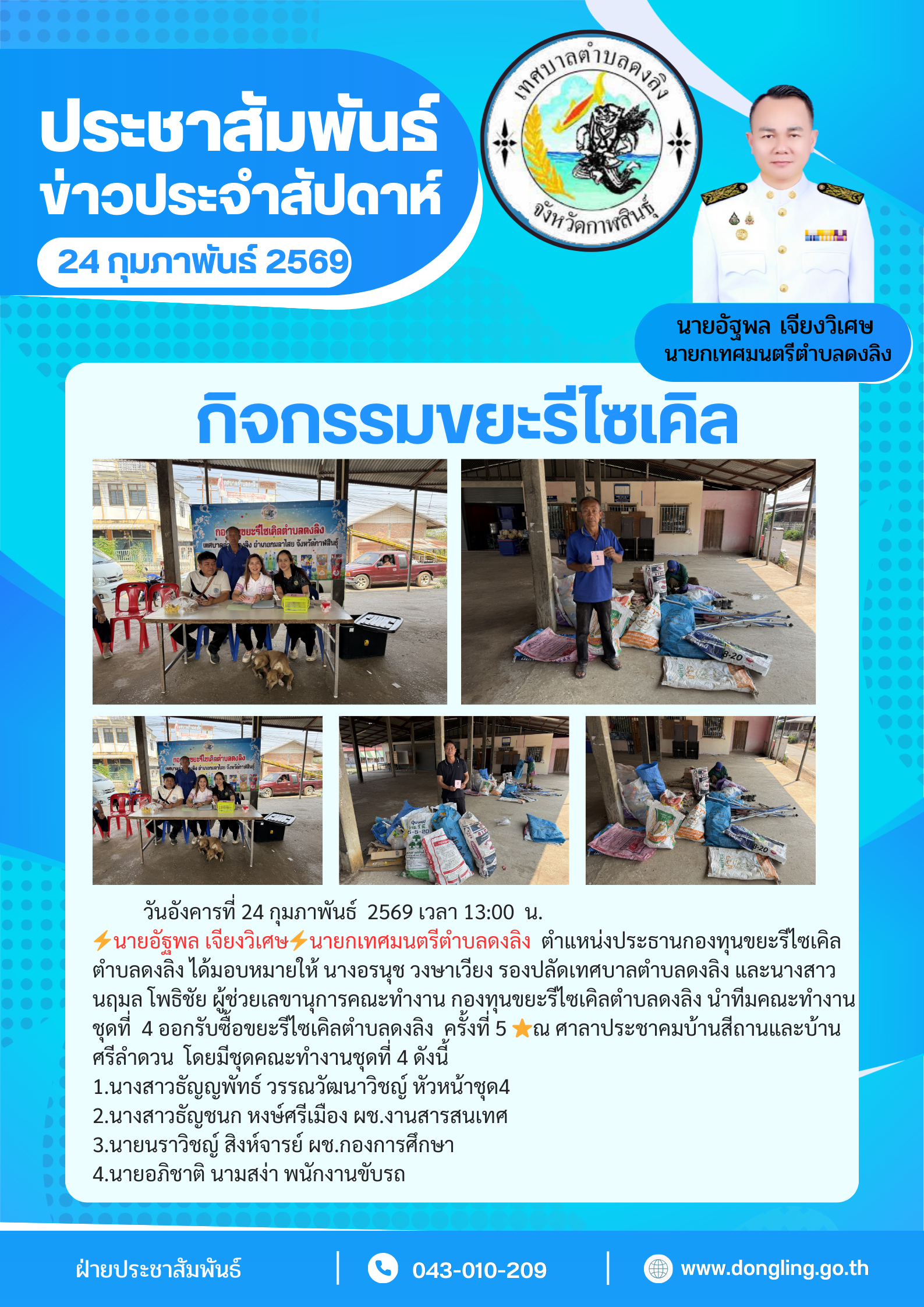 เทศบาลตำบลดงลิง ตำบลดงลิง อำเภอกมลาไสย จังหวัดกาฬสินธุ์ :www.dongling.go.th