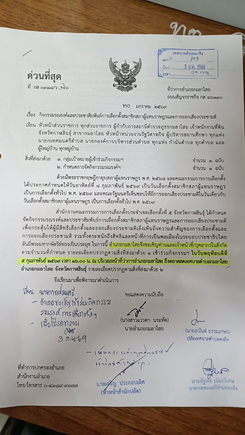 วันที่ 5 กุมภาพันธ์ 2569 นายอัฐพล เจียงวิเศษ นายกเทศมนตรีตำบลดงลิง พร้อมคณะผู้บริหาร สมาชิกสภา ข้าราชการพนักงานเทศบาลตำบลดงลิง ร่วมกิจกรรมรณรงค์ ประชาสัมพันธ์ ออกมาใช้สิทธิ์เลือกตั้งสมาชิกสภาผู้แทนราษฎรและออกเสียงประชามติ ในวันที่ ๘ กุมภาพันธ์ ๒๕๖๙